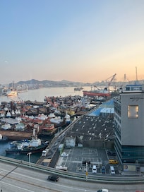 The view was amazing, you can see the skyline towards the Busan Port. Easy refreshing walks over the Yeongdo bridge to get to shopping malls and markets. Many restaurants around for great food and food stalls along the road leading up to the hotel at night. Too bad we only could stay for a night, I would definitely book here again to explore Busan some more.