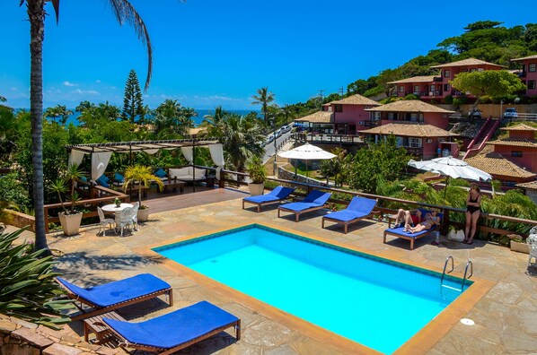 Travelers relax by the pool at Aguabúzios Hotel or rent bikes to explore the scenic coastline of Azeda Beach, just minutes from the property