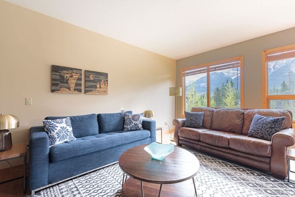 Nestled in the trees with views of Three Sisters and Rundle Mountain, Luxury Downtown w/ Rooftop Hot Tub offers a tranquil retreat. Unwind on your South-facing covered patio, indulge in freshly roasted local coffee or enjoy a glass of wine while taking in the mountain air. The luxury condo features wood floors, granite countertops, gas fireplace and high end furnishings complete the luxury feeling.