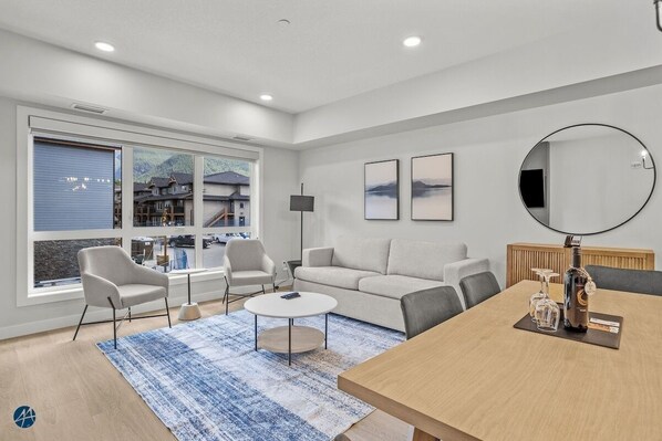 Cozy Canmore Condo for 7🍁Modern Rustic Mountain Escape⛰☀️Outdoor Pool & Hot Tubs☀️