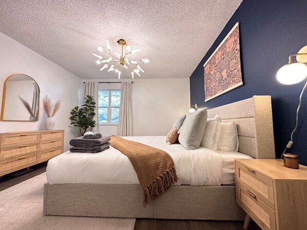 Experience the Mile High City in a stylish chic home with all of the fixings you need for a magical stay. This mid-century modern paradise features spacious bedrooms, including one with a king bed and two others with queen and twin beds respectively, perfect for unwinding after exploring Denver.