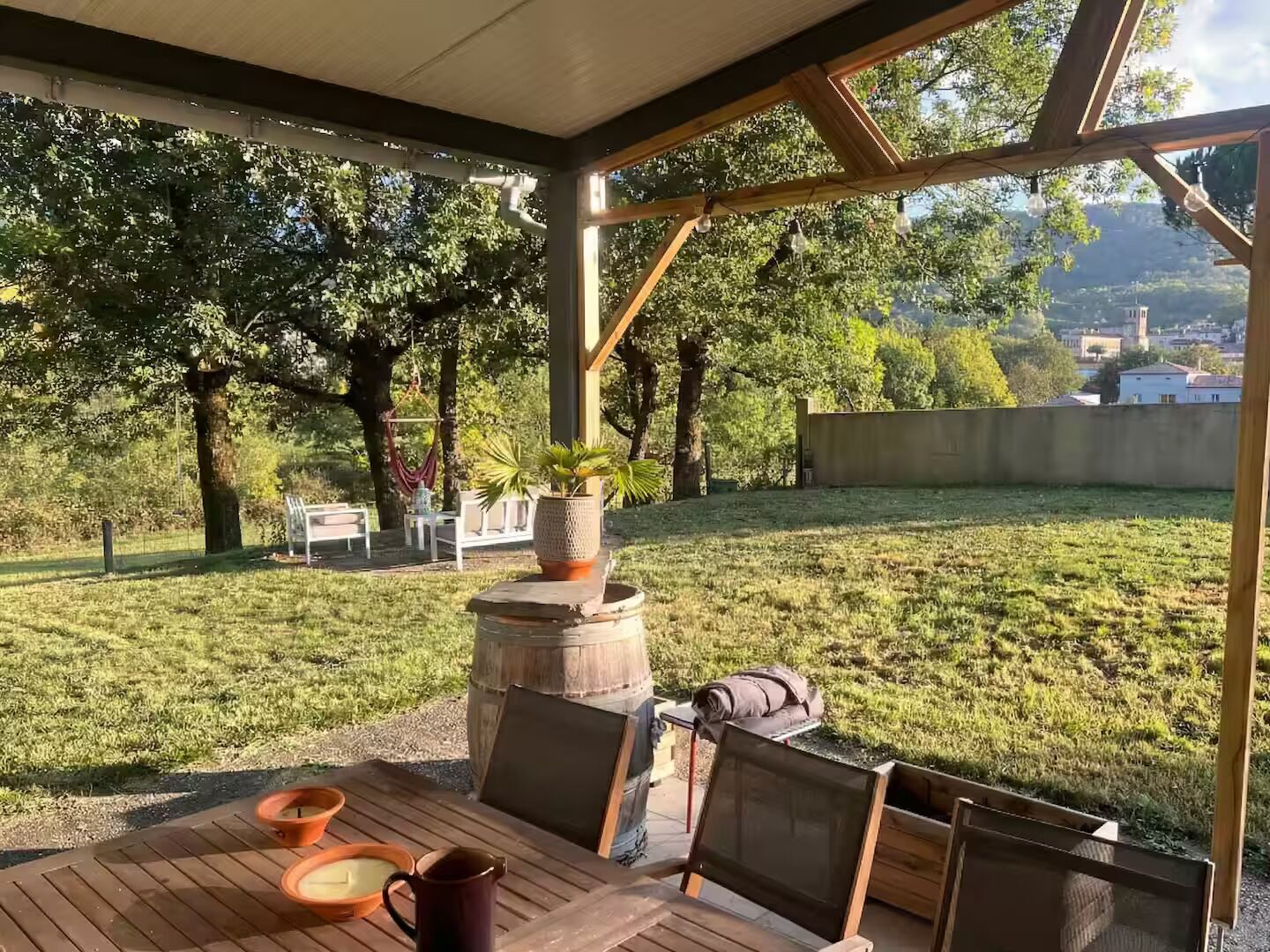 "Grande maison bien équipée et une belle terrasse donnant sur un grand jardin au calme.Il manquait juste un bon coup de propre et le séjour aurait été parfait."