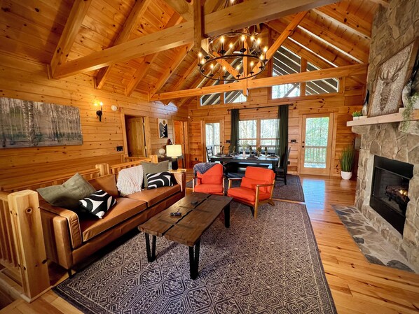 * Relax & Rejuvenate: Soak under the stars in the 5-person hot tub or sip your morning coffee on the back porch while enjoying the fresh mountain air.