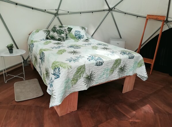 Nature surrounds you at this tranquil glamping retreat. Take in the lush garden and forest views, stroll through the grounds, and enjoy soothing bird sounds.