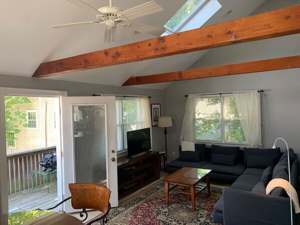 This Falmouth apartment provides complimentary wireless Internet access, with a speed of 500+ Mbps (good for 6+ people or 10+ devices). Business-friendly amenities include desks and desk chairs.