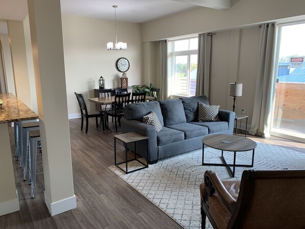 This condo is conveniently and centrally located in the heart of Grand Haven. Three bedroom, two bathroom condo with granite countertops, stainless steel appliances, and fully updated kitchen and bathrooms. There are queen beds in the master and spare bedroom and two twin beds in the other. Serta air mattress is available for additional sleeping. Fully stocked kitchen including dinnerware, silverware, coffeepot, baking dishes, and glassware. Within and surrounding the immediate complex you will find a coffee shop (Biggby franchise), Temptations ice cream shop, Jimmy Johns, Culvers, Ryke's Bakery, and a new and fun restaurant called The Paisley Pig. Located walking distance to the downtown district, Chinook Pier, and the Historic boardwalk.