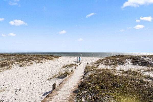 Nestled between the ocean and Little Lagoon in Gulf Shores, Alabama, this condo offers a relaxing retreat. With two king beds and a queen sleeper sofa bed with memory foam mattresses, it's perfect for families or groups of six. Take a five-minute walk to either the beach or lagoon, enjoy views of both from the pool deck, or cast your line at the public fishing pier just down from the complex.