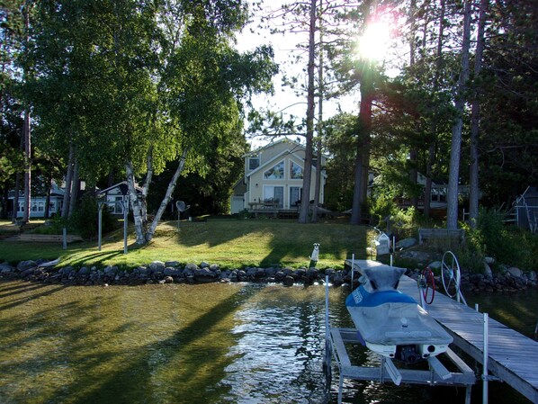 Perfect cottage on Mullet Lake. Over 2,000 square feet with open floor plan - kitchen leading into great room that overlooks gorgeous Mullet Lake. 3 bedrooms upstairs with 21x14 loft above garage for the kids. 4 beds in the loft, with futon and sleeper sofa. Can sleep 16 comfortably on beds. If there are more than 8 guests, you will be charged $50/person/night. 2 full baths. Sit on the deck overlooking the lake in this beautifully remodeled house. Also great for winter with ski slopes 30 minutes away.