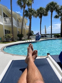 Yes, this property has an outdoor pool. Pool access is from 7:00 AM to 9:00 PM.