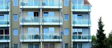 Apartment 7. 205 for 2 persons, on the grounds of the Yachthafenresidenz, 26 m² living space, 1. Floor with balcony, parking lot on the property, distance to the beach 2 min and to the city center 5 min, washing machine and dryer for a fee, no pets!In the neighboring hotel complex you can use the seawater swimming pool and the sauna area for a fee. The apartment has: living room with kitchenette - 2 hotplates, refrigerator, coffee maker, kettle, toaster, 1 double bed, 1 wardrobe, dining area, cable TV, radio / CD, shower / WC