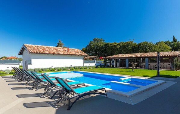 This beautiful and luxurious Villa Alba Bianca is located in ian near Pula. The villa can accommodate up to 8 people. The beautiful Alba Bianca villa offers everything you need for the perfect family holiday. On the ground floor of the villa there is a modern living room, kitchen and dining area as well as a bedroom with separate beds. On the first floor there are two double bedrooms with en-suite bathrooms. All rooms are equipped with air conditioning and TV. If you want to try traditional Istrian dishes, in the outdoor summer kitchen you will find everything you need to prepare a delicious meal for the whole family, as well as a gas barbecue. If you want to have fun, you don't have to worry, because Villa Alba Bianca offers you table football, table tennis, darts, Playstation 4 and a beautiful garden with a children's playground where your little ones can play. If you want to relax, we recommend you try the sauna or swim in the beautiful pool. Villa Alba Bianca is an ideal choice for your holiday in Istria.