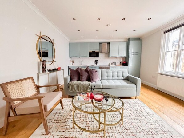 The Space: Experience the vibrant charm of Notting Hill in this stylish 1-bedroom, 1-bathroom top-floor apartment. Featuring a cosy living area, a fully equipped kitchen, this apartment is perfect for solo travellers or couples. Located in the heart of one of London’s most iconic neighbourhoods, you’ll be steps away from boutique shops, cafes, and the famous Portobello Market.