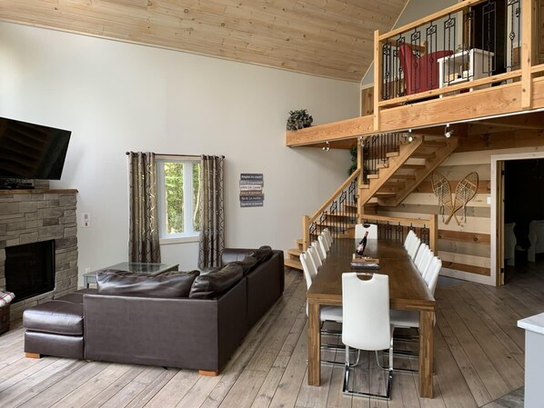 Chalet du Verseau comfortably accommodates up to 14 guests. Located in the heart of Mandeville, this charming chalet offers both privacy and close proximity to nature.