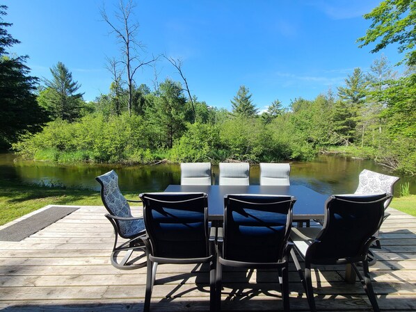 Make yourself at home at the River Ranch which offers 3 bedrooms, 1 full bathroom and 1 half bathroom. Bedroom 1 has 1 king bed and a crib. Bedroom 2 offers a bunk bed with a Full bed on the bottom and a twin on top as well as an additional Queen bed. Bedroom 3 offers one Full bed. Each room features soft, cozy sheets for a comfortable night's sleep. Wake up rested in the morning to enjoy your coffee on the 3 season porch as you take in your surroundings. Relax. Unwind. Enjoy!