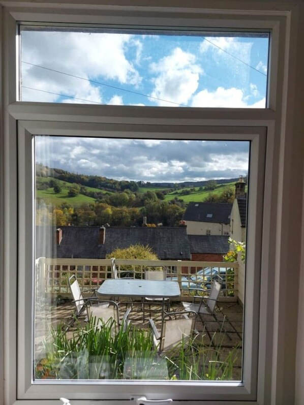 The comfortable living room has spectacular views to the front. There is a 40 inch TV offering Freeview and a DVD player. The adjoining spacious dining room has a large table, which is great for family meals and get togethers, along with a log burner to make the most of those cosy nights in. The kitchen is well-equipped with electric fan oven, gas hob, microwave, fridge and utensils. In the outhouse on the back yard there is also a washing machine and freezer.