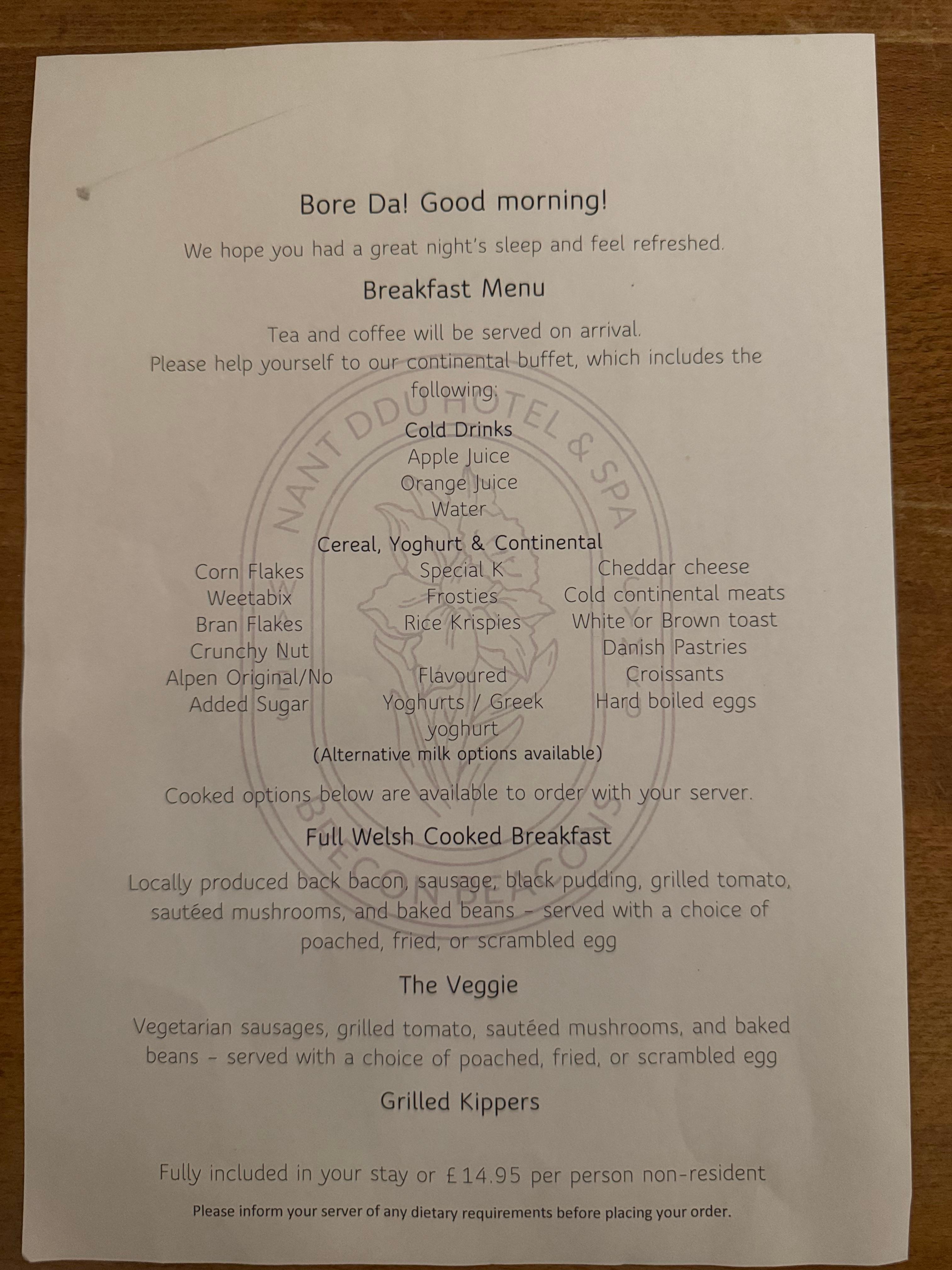 - Breakfast available