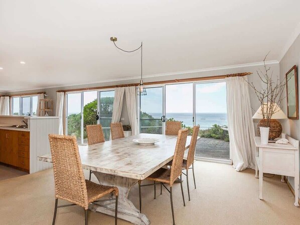 Magnificent ocean views with the beach at your front doorstep, you can't get much better than this. Two generous living areas makes this the ideal holiday home. as the adults can relax in the kitchen/living/dinning area, while the kids can retreat to the upstairs rumpus room.