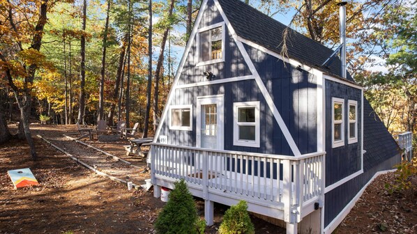 Experience the tranquility of the mountains with breathtaking views, and crisp air. This modern A‑Frame sits in the peaceful Shenandoah region and is set up for easy outdoor enjoyment with a firepit, hammock, horseshoes, and cornhole. The east‑facing balcony is perfect for your morning coffee as you take in the sunrise.