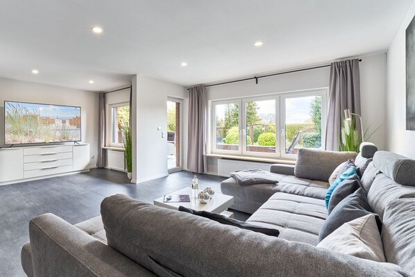 Large time-out apartment - modern, close to the beach and with a large garden terrace -