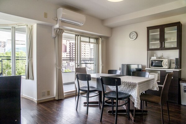 這間位於大阪的公寓提供免費無線上網設施。房內裝有平面電視。