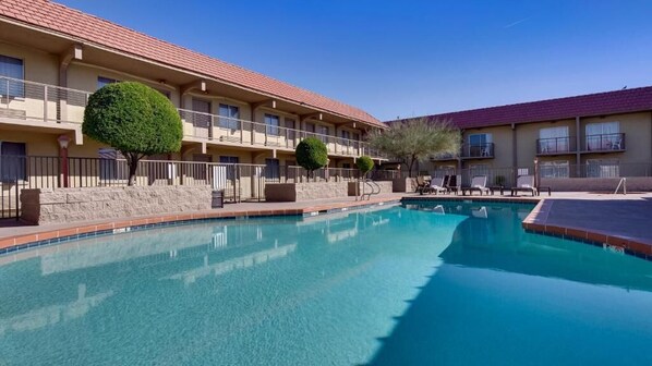 Travelers can relax by the outdoor pool or head to the Roadhouse restaurant and bar for happy hour after arriving at this Phoenix airport hotel