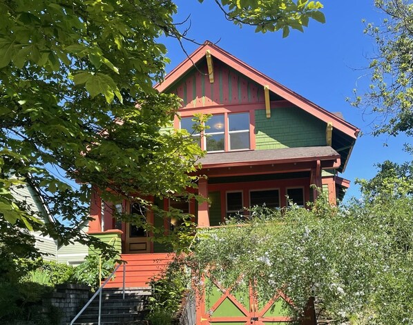 Experience the quintessential Portland charm at this Alberta Arts craftsman. Unwind on the elevated front porch with sunset views or in the cozy living room with a 60x70 sleeper sofa, perfect for up to four people. The light-filled one bedroom has a queen-sized bed, while the large kitchen boasts a full-size refrigerator and stove.