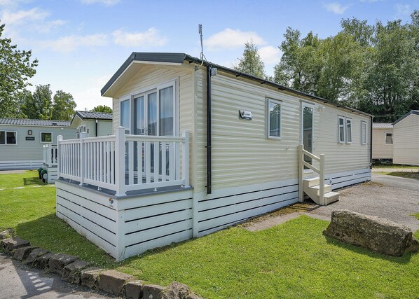 3 bedroom Ribchester Platinum Caravan with balcony at the front.