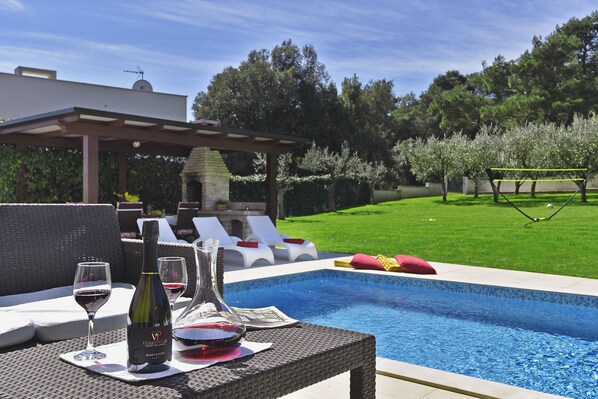 Beautiful **** villa with heated pool, summer kitchen, WiFi, grill, fitness, 1.5 km from the sea