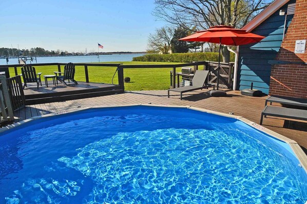 This waterfront 4 BR, 2 1/2 BA Private house in the town of Rock Hall has been recently renovated. Its newest addition is an outdoor Hot Tub, perfect for a weekend getaway or week long vacation. Enjoy watching the sailboats going by while enjoying a relaxing evening. Fun in all seasons. Or in the summer months take a dip in the pool. Decking and railings have been remodeled to give an expansive view of the water. It has 300' pier with 4' MWD in Swan Creek, a private pool and the best sunsets to enjoy on the deck or with cocktails relaxing under the shade trees. Kayaks, bikes and more are provided for your entertainment. Walk or bike to town and enjoy restaurants and shops. A great property for a family vacation off the Chesapeake Bay.