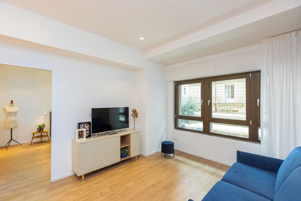 Luxury and Comfort in the Heart of Rome – Elegant Two-Bedroom Apartment on Via Tacito. Nestled in one of Rome’s most sophisticated areas, just a short walk from Piazza Cavour and the Vatican, this newly renovated apartment blends refined aesthetics with ultimate comfort, offering an exclusive and stylish retreat. The interiors showcase a soft, neutral color palette of beige, light gray, and ivory, creating a serene and elegant atmosphere. The large windows allow natural light to flood the space, highlighting the high-end materials, including parquet and sleek, modern furnishings. The spacious living area is designed for relaxation and entertainment, featuring a comfortable sofa bed, a flat-screen TV, and a stylish dining table for up to 6 people. The fully equipped open kitchen, fitted with premium appliances, offers a seamless cooking experience. The apartment boasts two beautifully designed bedrooms: the master bedroom with a double bed, plush linens, and soft lighting for a peaceful retreat, and a second bedroom with a French-size bed, perfect for additional guests or those seeking a cozy, private space. Both of them have a TV. The two elegant bathrooms are designed with sleek finishes and spacious walk-in showers, offering a ultimate relaxation. Adding to the apartment’s convenience, a washer/dryer combo ensures comfort for longer stays, while well-organized storage solutions provide practicality without compromising style. Ideal for travelers looking for a sophisticated stay, this apartment perfectly combines modern elegance with the timeless charm of Rome, making it an exceptional choice for a memorable visit to the Eternal City.