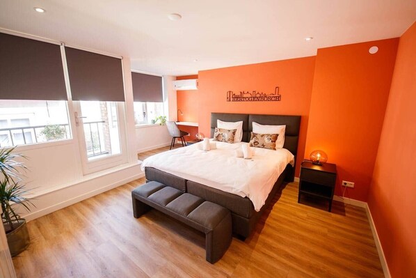 Located in the centre of town, off Ridderstraat, this is a great apartment to stay in. Literally a stones through from the central square, you couldn't ask for a better in town location.The apartment is on the second floor, accessed via a secure door on the ground floor. The coffee bar below the apartment is great, serving fantastic coffee. The apartment itself is great. Decently sized, with a nice shower room, fridge-freezer, dishwasher, induction hob and microwave. There's an ironing board too, as well as a washing machine and a seperate dryer.We were there for the EHL finals, at HC Den Bosch, and it's either a 30-40 min walk, or a 16 Uber. If it's fine weather, the walk is great.We will stay again if the hockey is in Den Bosch.