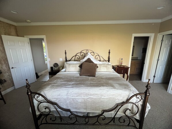 The Chateau sits on 30 private acres 600 feet above the City of Selah, with a 360 degree view of the Valley plus Mt. Adams and Mt. Rainier. Relax by the pool or on the covered private patio, gaze across the orchards and vineyards as the sunsets. Bring your camera to take pictures of the breath taking scenery and sunsets. Then take a walk around the pond or hike the local trails, all this... only minutes from Town. Each Suite has its own private bath, walk in closet and picture window to take in the sweeping views, allowing just 2 Guests per suite. Each suite has a microwave, coffee pot, herbal teas, throw blanket and mini-fridge. There is a Dining-Room (Shared), Kitchen (Shared), Living room (Shared), Theater Room (Shared), Patio (Shared) 1 Pool (Shared) Wi-Fi. We have a full kitchen plus 3 outdoor BBQ if you would like to stay in to dine at the Chateau.