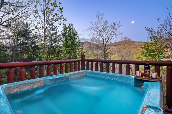 Enjoy your evening star-gazing in your very own hot tub under the stars!