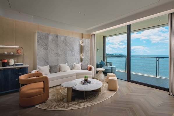 豪华海景大床房 | 迷你吧、客房内保险箱、遮光窗帘、隔音