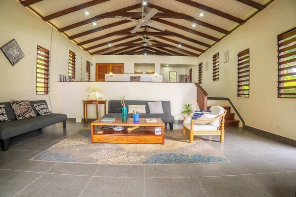 Whispering Palms is nestled on Undine Bay, north of Port Vila at Siviri Village, offering a private and serene escape. Enjoy snorkeling or kayaking directly from the 50m white sand beach with provided gear, unwind in the beautiful gardens or relax on your villa's covered deck overlooking the bay.