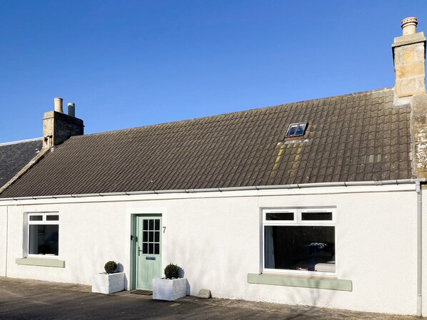 Bathroom: Bath With Shower Over, Toilet. Electric central heating, electricity, bed linen, towels and Wi-Fi included. Welcome pack.. Enclosed lawned garden with sitting-out area and garden furniture. Private parking for 1 car; additional on road parking. No smoking. Please note: Couples, families and holidaymakers only. There are 3 steps in the garden.. Fisher’s Cottage is an original fisherman’s cottage, situated in the heart of the charming seaside village of Balintore. This traditional single-storey, stone cottage is set along a quiet lane, just a few yards from a stunning sandy beach and pretty harbour. Beautifully presented throughout, the bright, modern living room/dining room has a pretty cottage suite and colour-coordinated soft furnishings. The kitchen is at the rear of the cottage and is equipped with modern built-in units. The back door opens onto the attractive gardens, with lawns, mature shrubs and outdoor dining furniture. There is a large kingsize bedroom which has been thoughtfully furnished, as well as a single bedroom. The cottage also has a good-sized family bathroom complete with shower over bath.