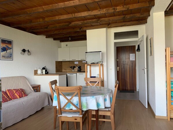 Studio for 4 persons of approximately 32m². Located on the 3rd floor with elevator. North facing with balcony and view over the valley.