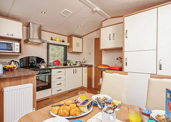 12ft-wide caravan with one double and two twin.