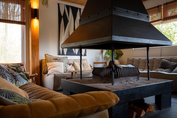Het huisje is prachtig ingericht met natuurlijke materialen, waardoor het voelt ...