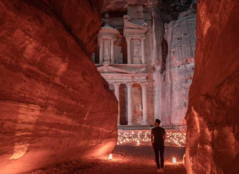 Day 2- Guided Exploration: The next day you will be picked up from your hotel at 7 am, and head out for a guided day tour in Petra. You will have 9 hours of exploring time inside Petra itself; many people choose to visit the treasury, monastery, the high area of Sacrifice and sites in between. You will be picked back up at 4 pm at your original departure point, and driven to your original hotel, concluding the tour.