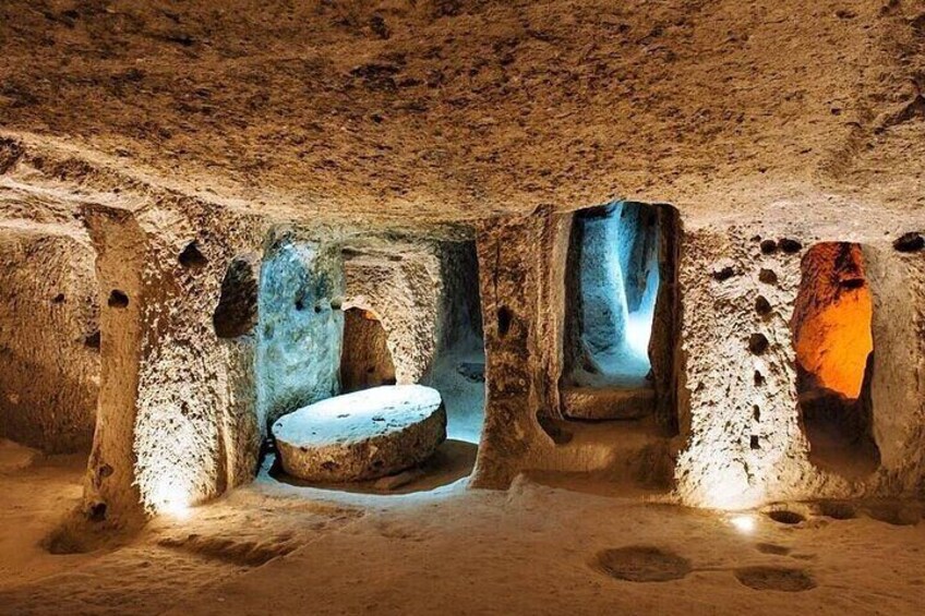 參觀地下城(Seraplı)。卡帕多西亞以其地下城市而聞名,我們正在參觀其中之一。