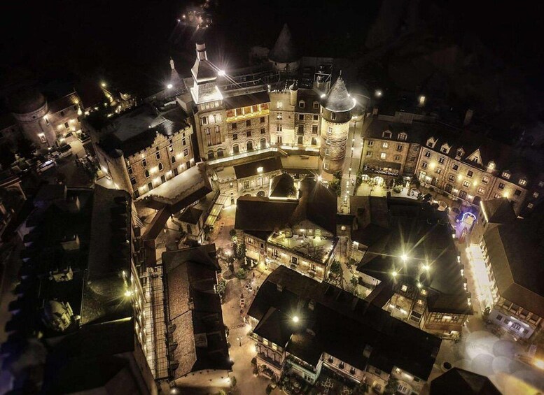 8:30 PM: Enjoy the romantic French Village night scene.