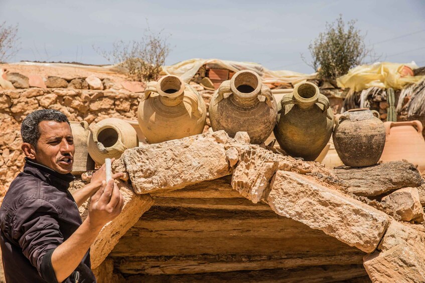 繼續前往 Guellala,這是一個以其令人難以置信的手工陶器而聞名的小村莊。參觀記錄傑爾比亞人生活和傳統的著名遺產博物館。然後參加陶器產品製造演示,了解製作這些令人難以置信的作品的秘密。