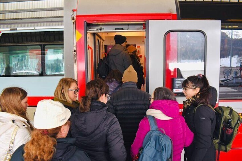 - Bernina紅列車的登機可以是從聖莫里茨或蒂拉諾,取決於可用性。 如果火車從蒂拉諾出發,在聖莫里茨將有有限的空閒時間。