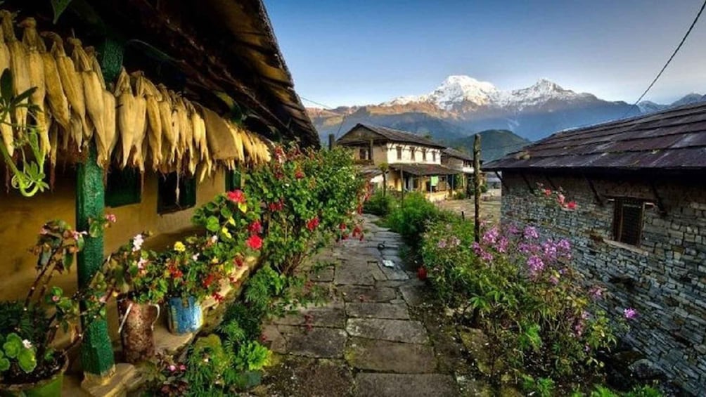 早起,從潘山 (Poon Hill) 的有利位置觀看令人驚嘆的日出,安納布爾納峰 (Annapurna) 和道拉吉里峰 (Dhaulagiri) 雄偉的山峰在此描繪出令人驚嘆的全景。欣賞完令人驚嘆的景色後,我們回到酒店吃早餐,然後繼續徒步前往甘德魯克。一路上,感受塔達帕尼的寧靜,享用美味的午餐。我們的徒步旅行在風景如畫的甘德魯克村莊結束,我們將在古隆社區的古老傳統中度過餘下的一天。