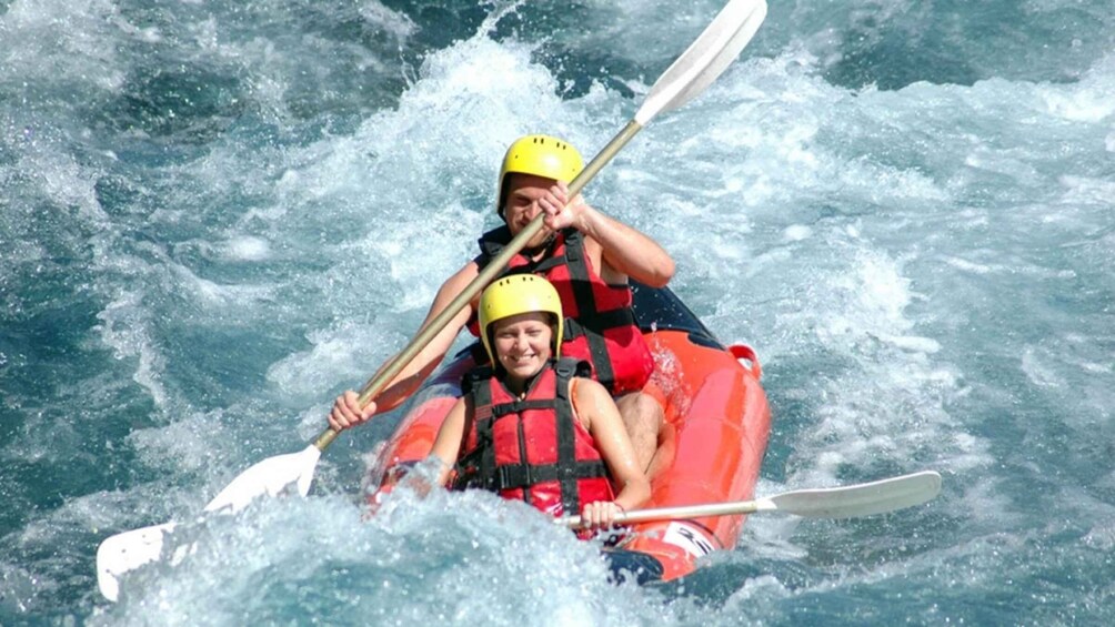 您將乘坐空調巴士從酒店前往活動終點。當您到達科普盧峽谷時,您將獲得裝備(救生衣、頭盔、槳和獨木舟)。如果您需要額外的裝備,例如合適的鞋子或氯丁橡膠,您可以在這裡購買。