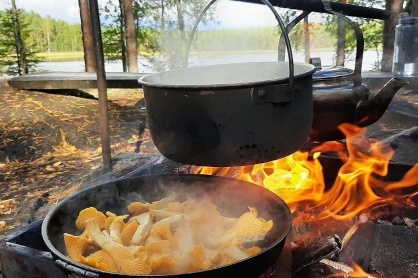 在国家公园里狩猎蘑菇
