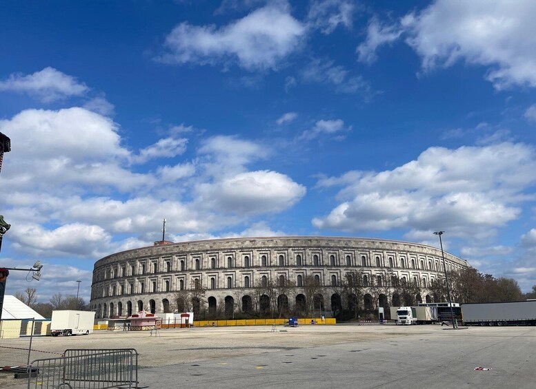 在纽伦堡二战历史徒步之旅中思考过去。探索路易波德竞技场和纽伦堡会议厅等历史遗迹,这是保存最完好的国家社会主义纪念性建筑。