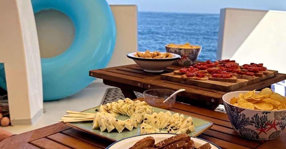 Indulge your taste buds with a typical Sicilian aperitif experience, an onboard spread features a tantalising array of local delicacies that perfectly complement the maritime setting. Pair the snacks with your choice of beer, local wine, water, or refreshing soft drinks.
