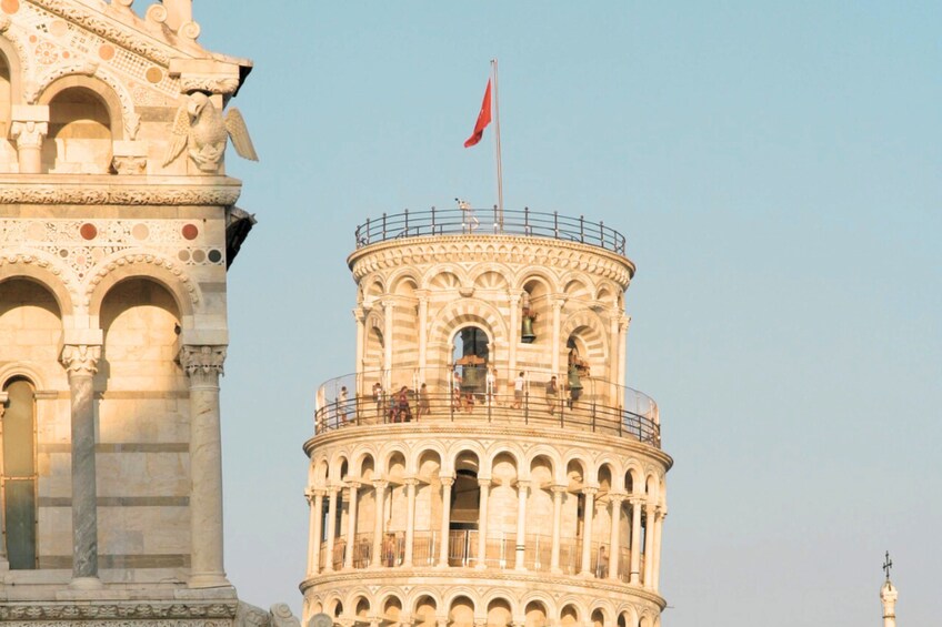 爬上比萨斜塔的 297 级台阶,欣赏比萨和周围托斯卡纳风景的壮丽景色。然后走进大教堂,欣赏其引人注目的大理石柱、金色马赛克以及乔瓦尼·皮萨诺和契马布埃等艺术家的作品。